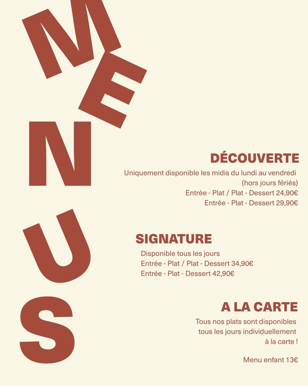 DÉCOUVREZ NOS PROPOSITIONS EN MENUS OU A LA CARTE